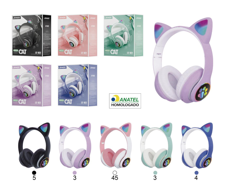 Fone Bluetooth de gatinho com led LEHMOX LEF-1022 Cores Diversas