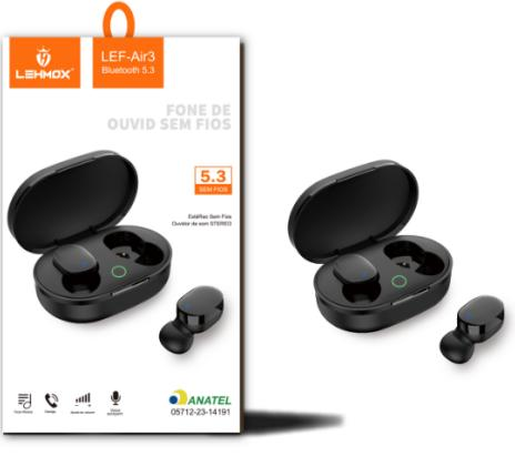 Fone De Ouvido TWS Bluetooth 5.3 LEHMOX LEF-AIR3 Preto